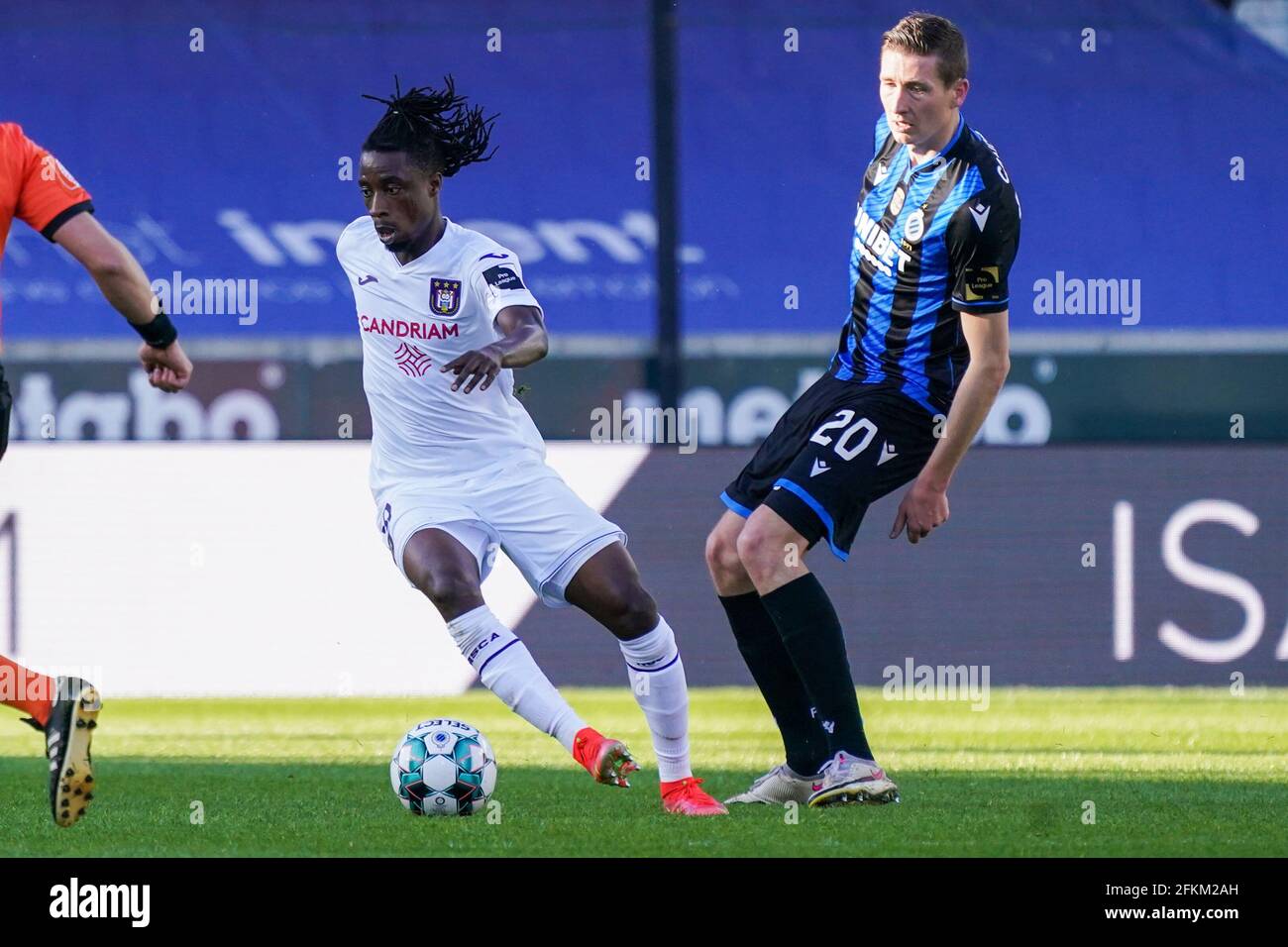 Brugge Belgium May 2 Albert Sambi Lokonga Of Rsc Anderlecht And Hans Vanaken Of Club Brugge During The Jupiler Pro League Championship Play Offs Match Between Club Bruges And Anderlecht At Jan